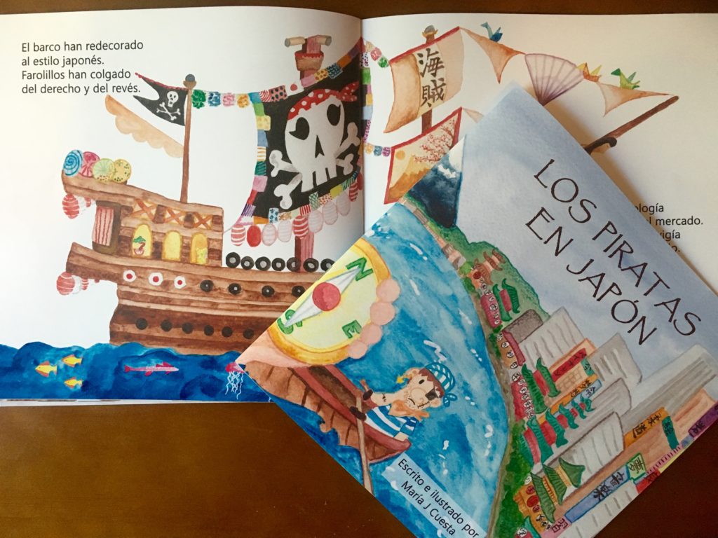 It’s here! It’s real! Los piratas en Japón, is the first book both written and illustrated by me. It is already published in Spanish and it will be published in English next June and this makes me very excited.